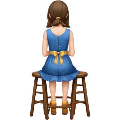 The girl is sitting on a stool facing full backwards. emoji