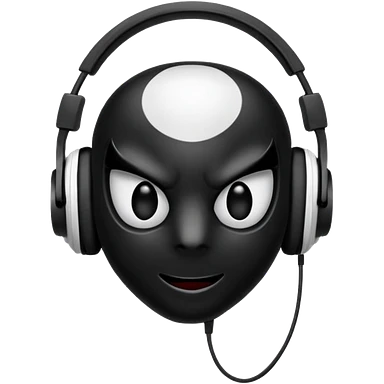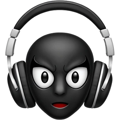 white panda, with red ears, with red, blue, pink headphones, with one button eye, and an ice cream splater on the headphones. emoji
