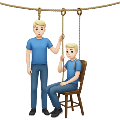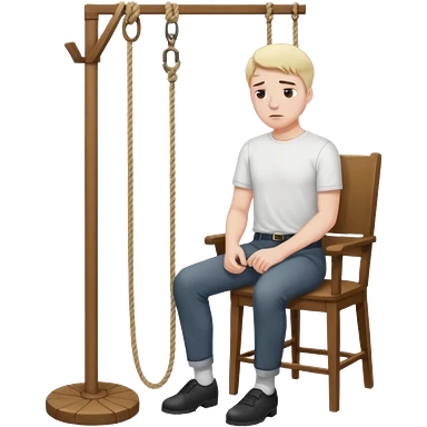A man standing in the chair and looking at rope before going to suicide emoji