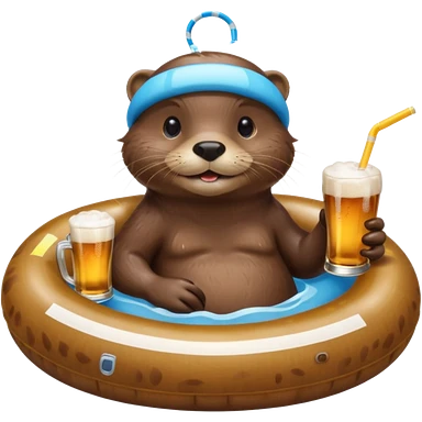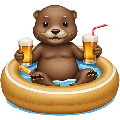 an otter sitting in an inflatable pool filled up with beer who is sipping directly from the pool made of beer with a little straw emoji
