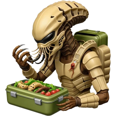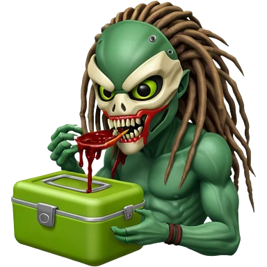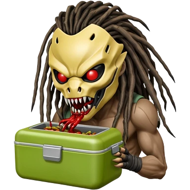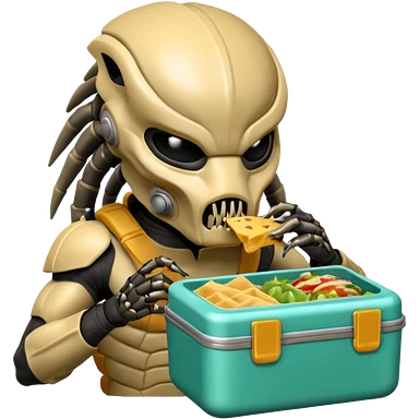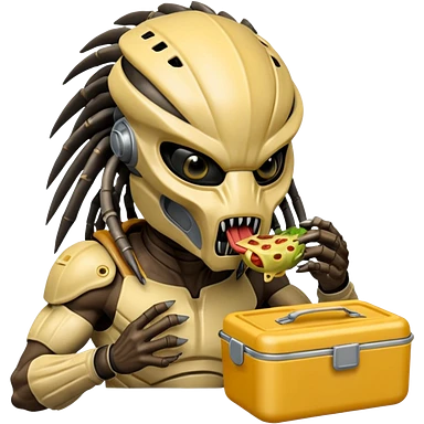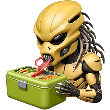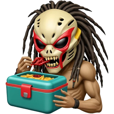 The predator with mask eating from a lunchbox, the setting should not be cartoon like. emoji