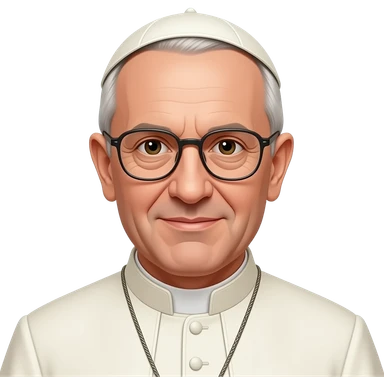 the Pope of Rome with glasses and without beard, in white dress emoji
