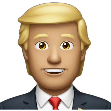 Donald Trump, hyper-photorealistic, maximum quality and detail, round face, polished finish, lifelike skin and facial features, very foxy and cunning expression, clean background, looks like a real photo emoji