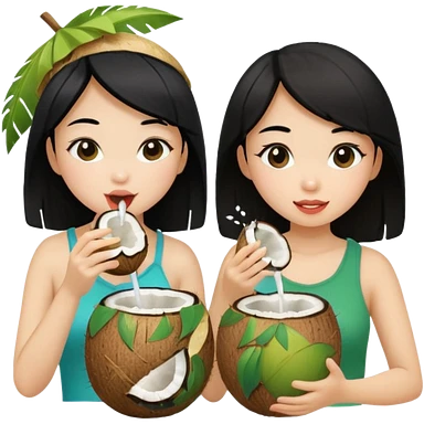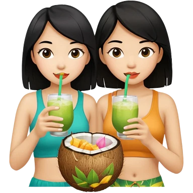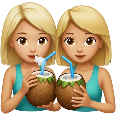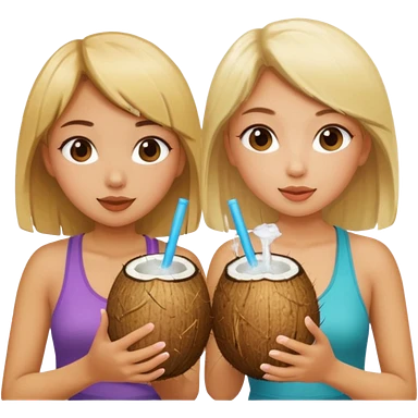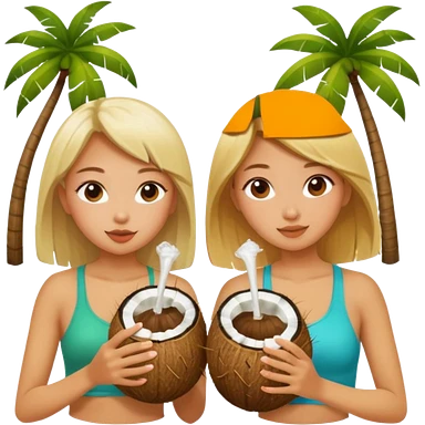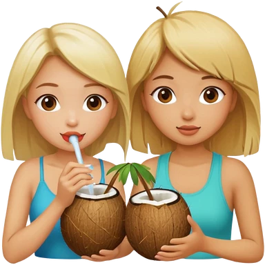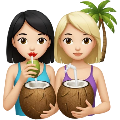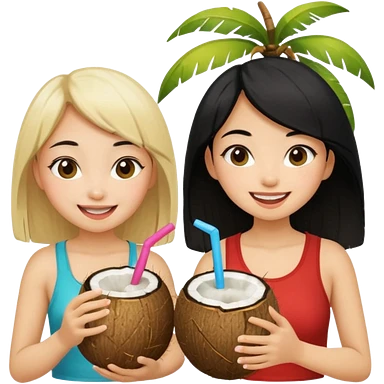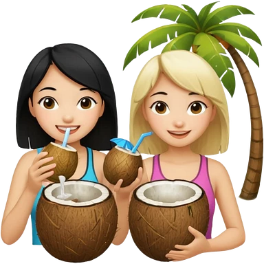 girls drinking out of a coconut one is Asian the other one is blonde emoji