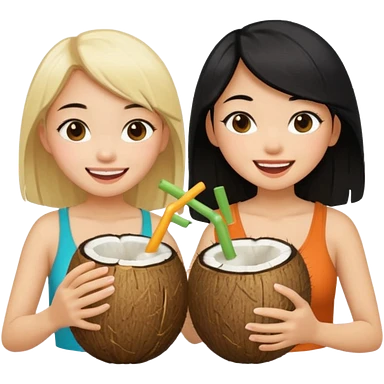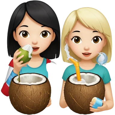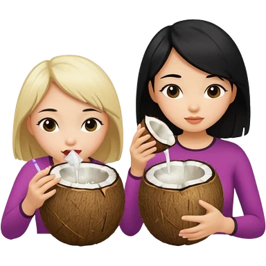 Two girls drinking out of a coconut one is Asian with black hair the other is white with blonde hair emoji