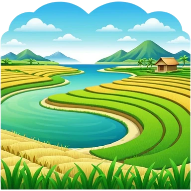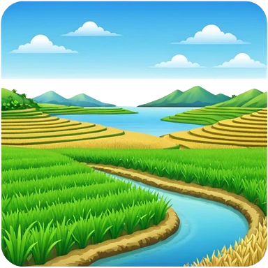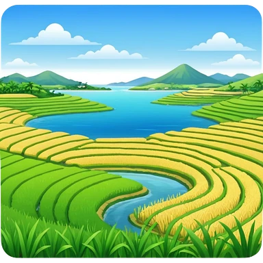 Make an emoji of a landscape with the sea and rice fields emoji