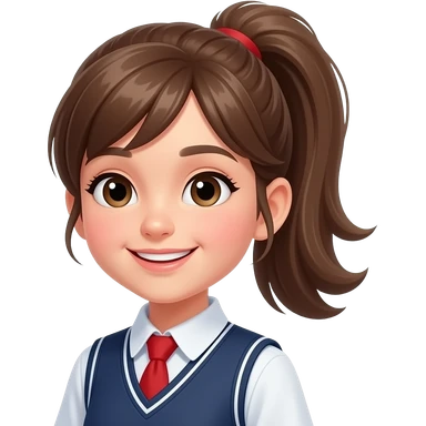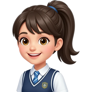 The schoolgirl wore her hair in a high ponytail, looking cheerful. emoji