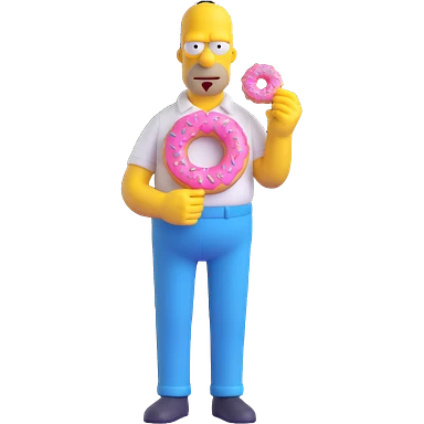 Homer Simpson 3D character, vibrant colors, holding a pink donut, classic pose emoji