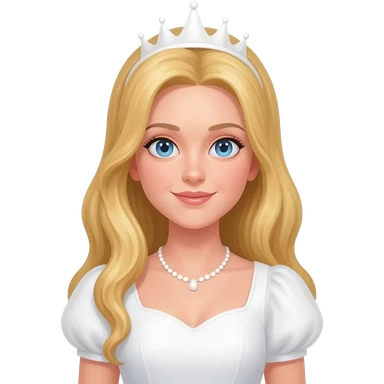 The Good Witch from The Land of Oz with blue eyes, long blonde hair, white dress, white necklace, white crown emoji