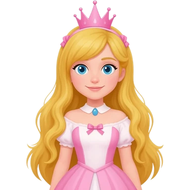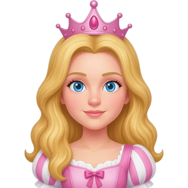 The Good Witch from The Land of Oz with blue eyes, long blonde hair, pink and white dress, pink crown emoji