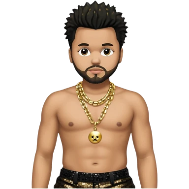 The Weeknd with black sequin baggy pants, shirtless with necklace emoji