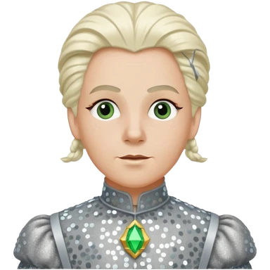 Madame Morrible from The Wizard of Oz with white hair, indigo sequin outfit emoji