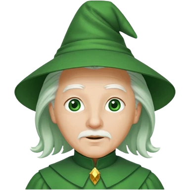 The Wizard from the Wizard of Oz with white hair, green eyes, green outfit emoji