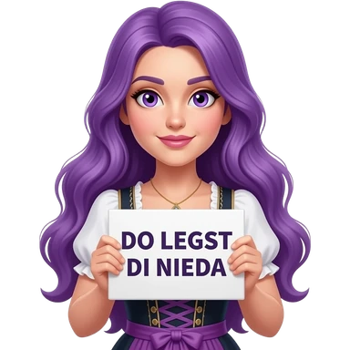 girl with long purple hair wearing a dirndl holding a SO LEGST DI NIEDA sign emoji