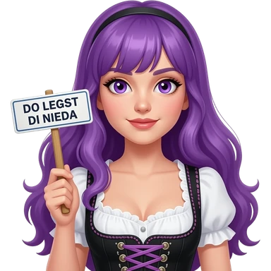 sexy girl with long purple hair and purple eyes wearing a dirndl holding a DO LEGST DI NIEDA sign emoji