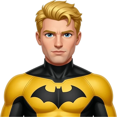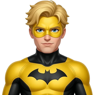 Create an emoji of the superhero sentry with yellow and black suit and golden hairs removing the bat symbol and the mask emoji