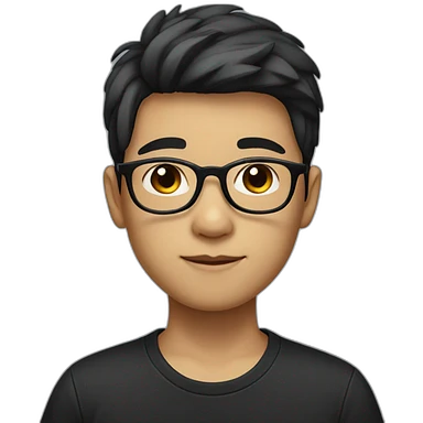 The young Chinese boy smiled with short hair, black-rimmed glasses and a black T-shirt. emoji | AI Emoji Generator