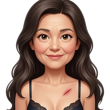 Asian mid age long hair wound body woman with Sexy lingerie bra and panty emoji