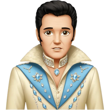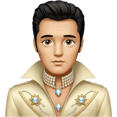 cinematic realistic aesthetic brilliant divine lighting, oil paint - An aging Elvis Presley in a glamorous ivory costume with a collar encrusted with diamonds emoji
