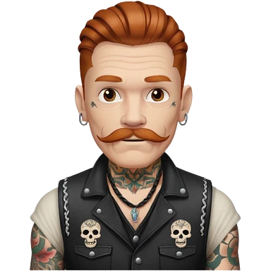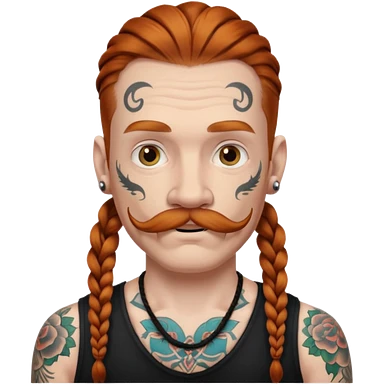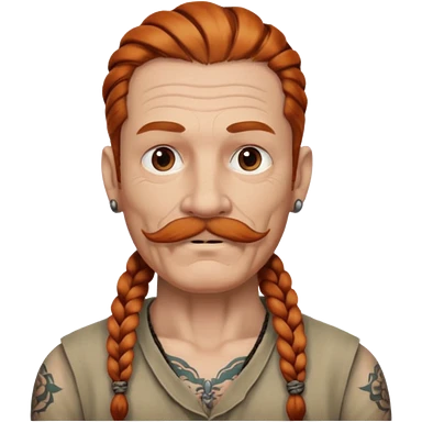 dark ginger braids man very white mustache old very tattoed with the whitest mustache ever emoji