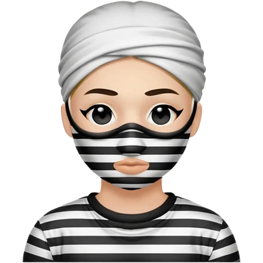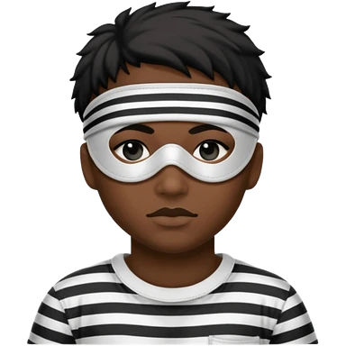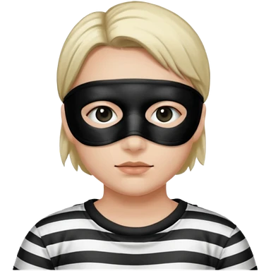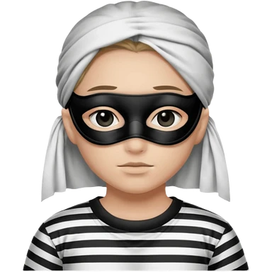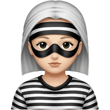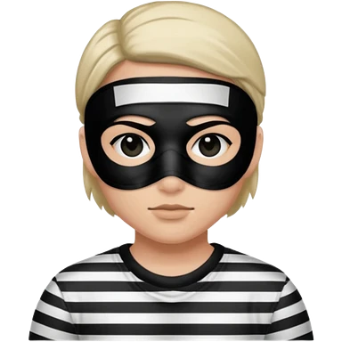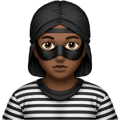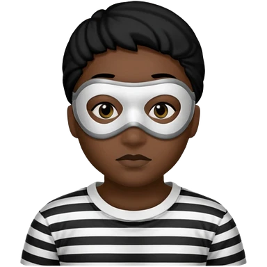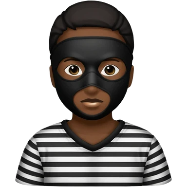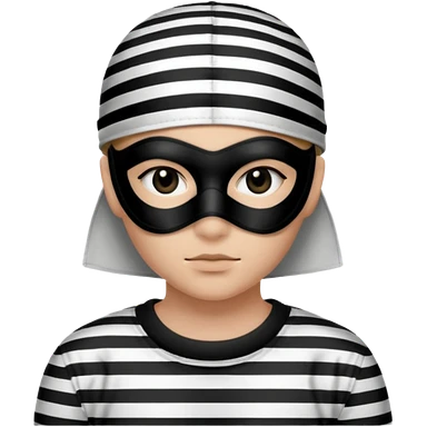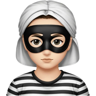 Thief with black eye type mask and black and white striped prison clothes emoji