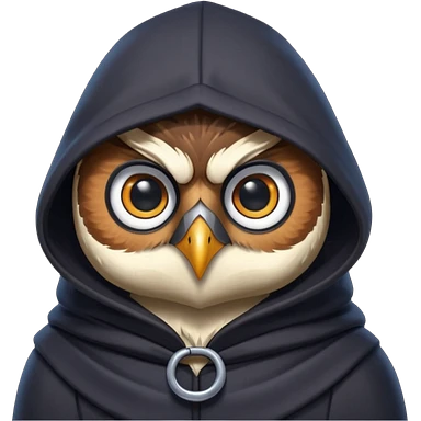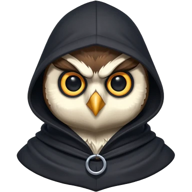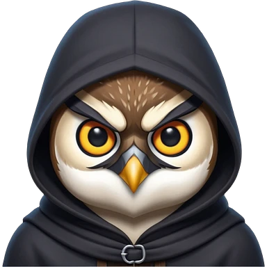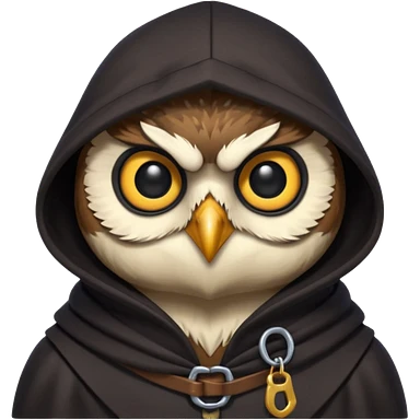 thief owl portrait, head and shoulders only, mysterious eyes, dark hood collar, silent night burglar vibe, 3D cartoon, mobile game icon style, clean background, no text, no watermark emoji