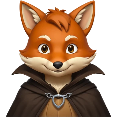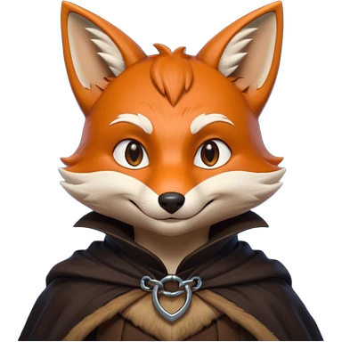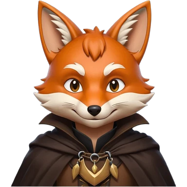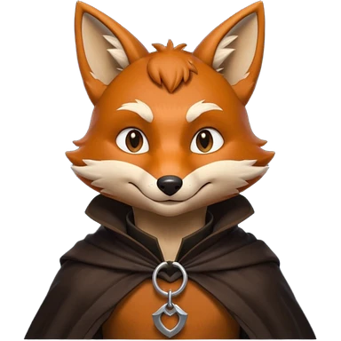 thief fox portrait, head and shoulders only, cunning grin, shadowy cloak collar, stealthy look, 3D cartoon, mobile game icon style, clean background, no text, no watermark emoji