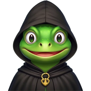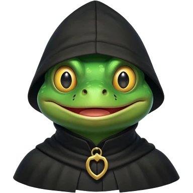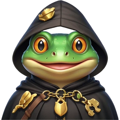thief frog portrait, head and shoulders only, sly grin, dark cloak collar, mischievous burglar vibe, 3D cartoon, mobile game icon style, clean background, no text, no watermark emoji