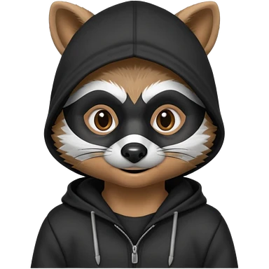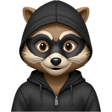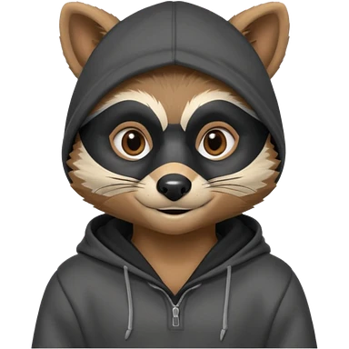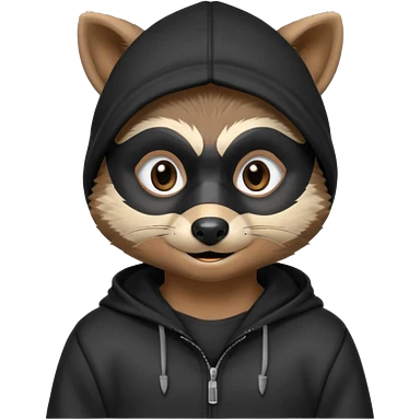 thief raccoon portrait, head and shoulders only, black burglar mask markings, sneaky smile, dark hoodie collar, mischievous eyes, 3D cartoon, mobile game icon style, clean background, no text, no watermark emoji