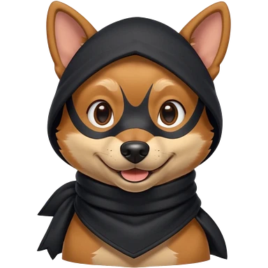 thief dog portrait, head and shoulders only, playful sneaky look, burglar scarf collar, mischievous smile, 3D cartoon, mobile game icon style, clean background, no text, no watermark emoji