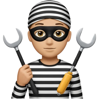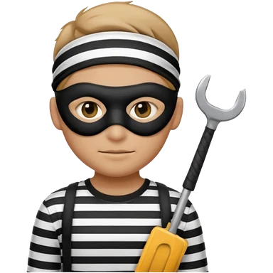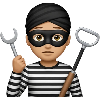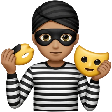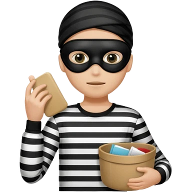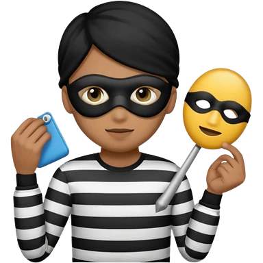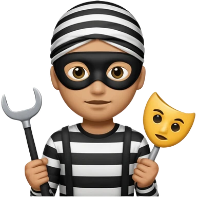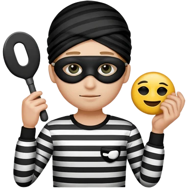 thief emoji wearing a black mask and striped shirt, sneaky expression emoji