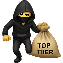 Thief stealing money bag with the words Top Tier stitched in it emoji | AI Emoji Generator