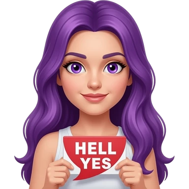 girl with long purple hair with a HELL YES sign emoji