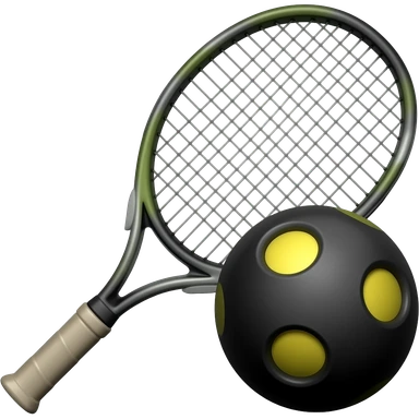Think Squash racket with a black squash ball with two yellow dots emoji