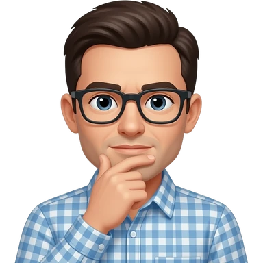 ...thinking pose, hand on chin, glowing digital brain patterns. emoji