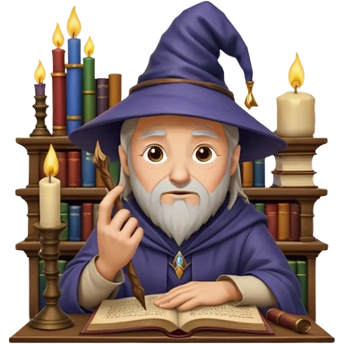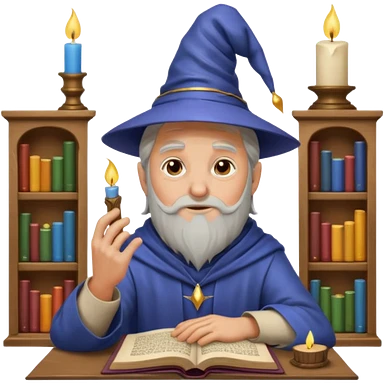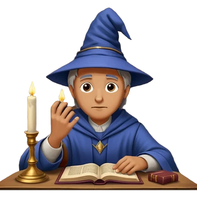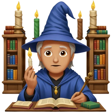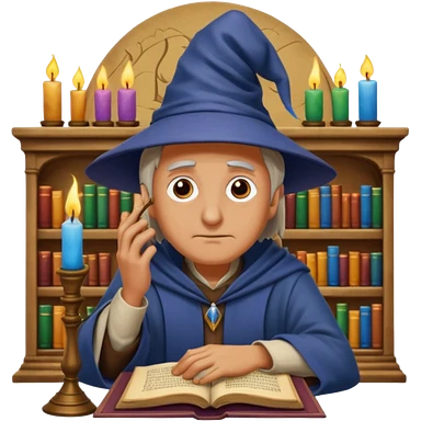 "Thinking face emoji 🤔 as a thoughtful wizard in Hogwarts library, scratching head with quill, surrounded by floating books and candles, detailed digital art in Harry Potter style, puzzled expression, magical atmosphere." emoji