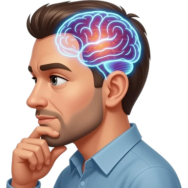 ...thinking pose, hand on chin, glowing digital brain patterns. emoji