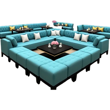 The lounge area adjacent to the dance floor featured thirty-six tables, with couches, ottomans, and banquette sofa seating. emoji