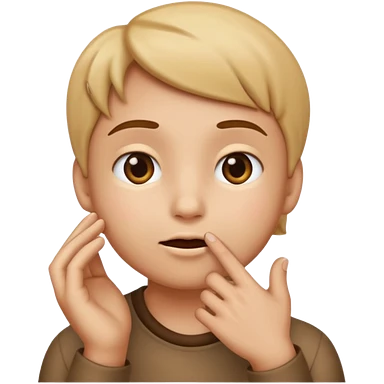 🤔this emoji with an innocent suspicious but also smirking 😏 expression looking up, but with that same hand emoji | AI Emoji Generator