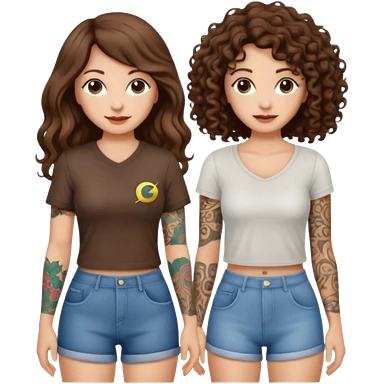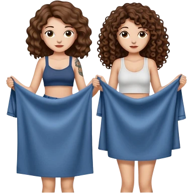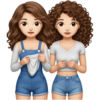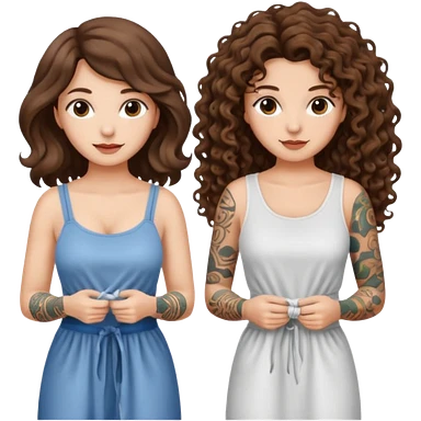 moon laundry — long wavy brown hair tattooed woman and short tight curly brown hair woman — cloth line emoji