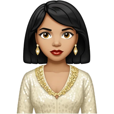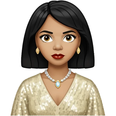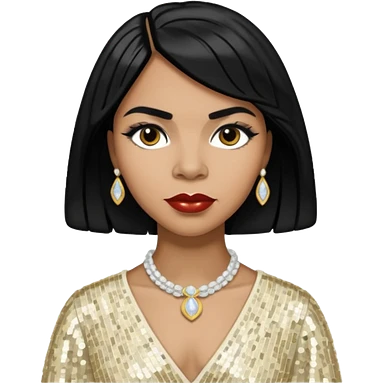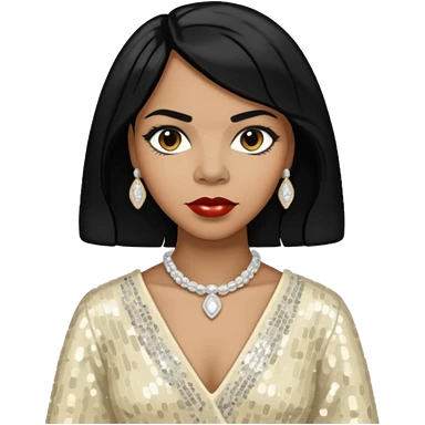 Marian Anderson with black hair, ivory sequin outfit emoji