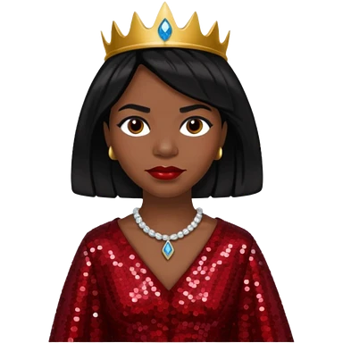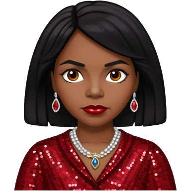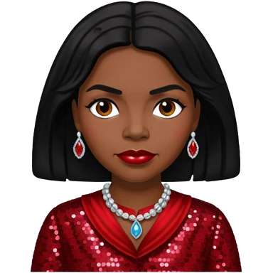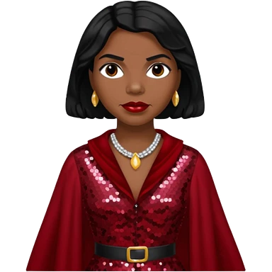 Marian Anderson with black hair, dark red sequin outfit emoji