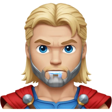 Thor, Thunder God from Norse Mythology with long red and beard, dark blue and silver outfit emoji