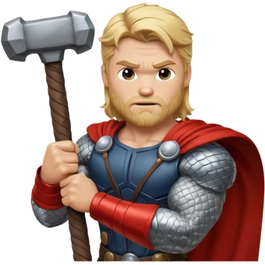 Thor, Thunder God from Norse Mythology with long red and beard, dark blue and silver outfit emoji