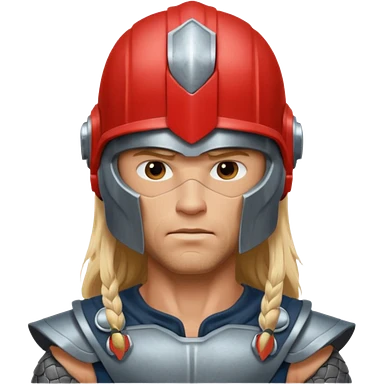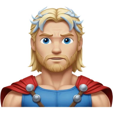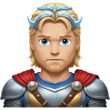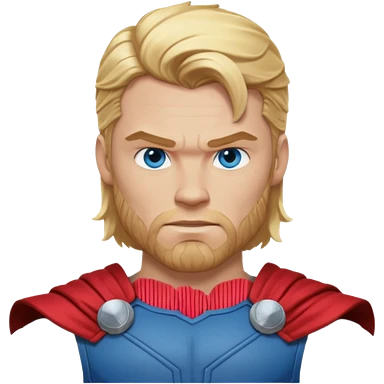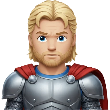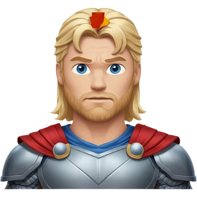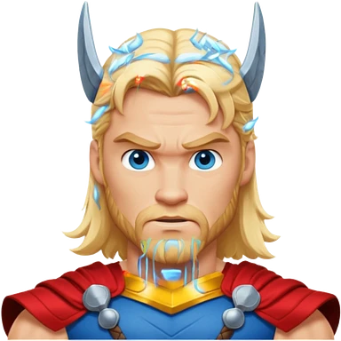 Thor, Thunder God from Norse Mythology with long red and beard, dark blue and silver outfit emoji