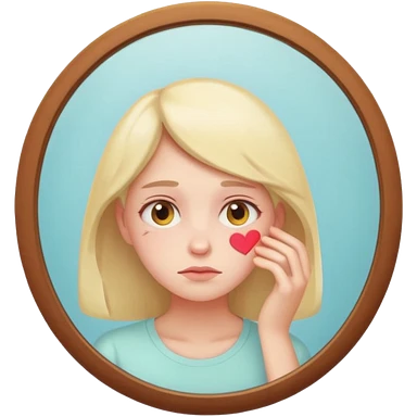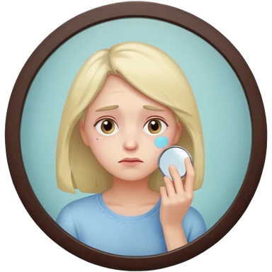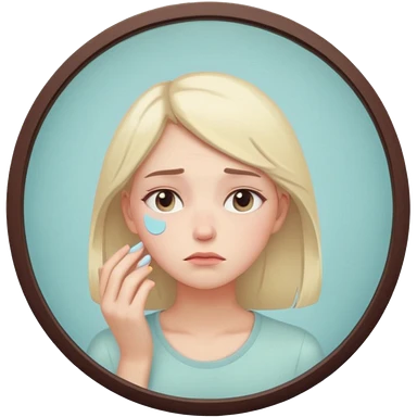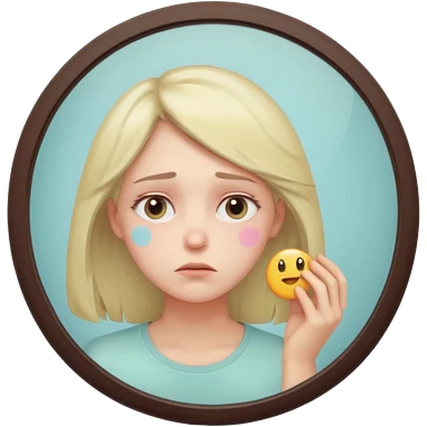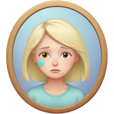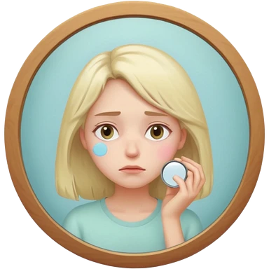 thoughtful tired woman looking in the mirror, gentle pastel tones, soft lighting, emoji style, symbolizes fatigue not ageing без кружка emoji | AI Emoji Generator