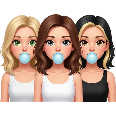 Three girls with white boogers sticking out under their nose. One brownish blonde hair and green eyes with white tank top, one brunette hair, and one with brown eyes and black hair and blonde highlights in hair and brown eyes emoji