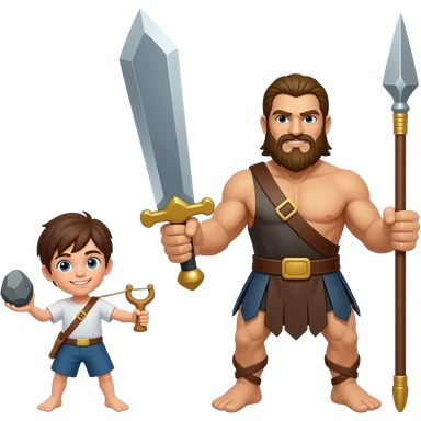 David's weapons vs. Goliath's weapons together tools only! emoji