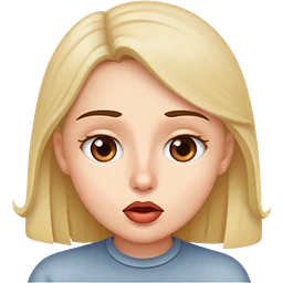 blonde girl with flushed cheeks, whispering gossip, surrounded by pink emoji