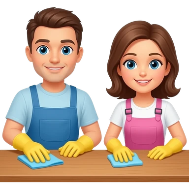girl and boy cleaning table emoji